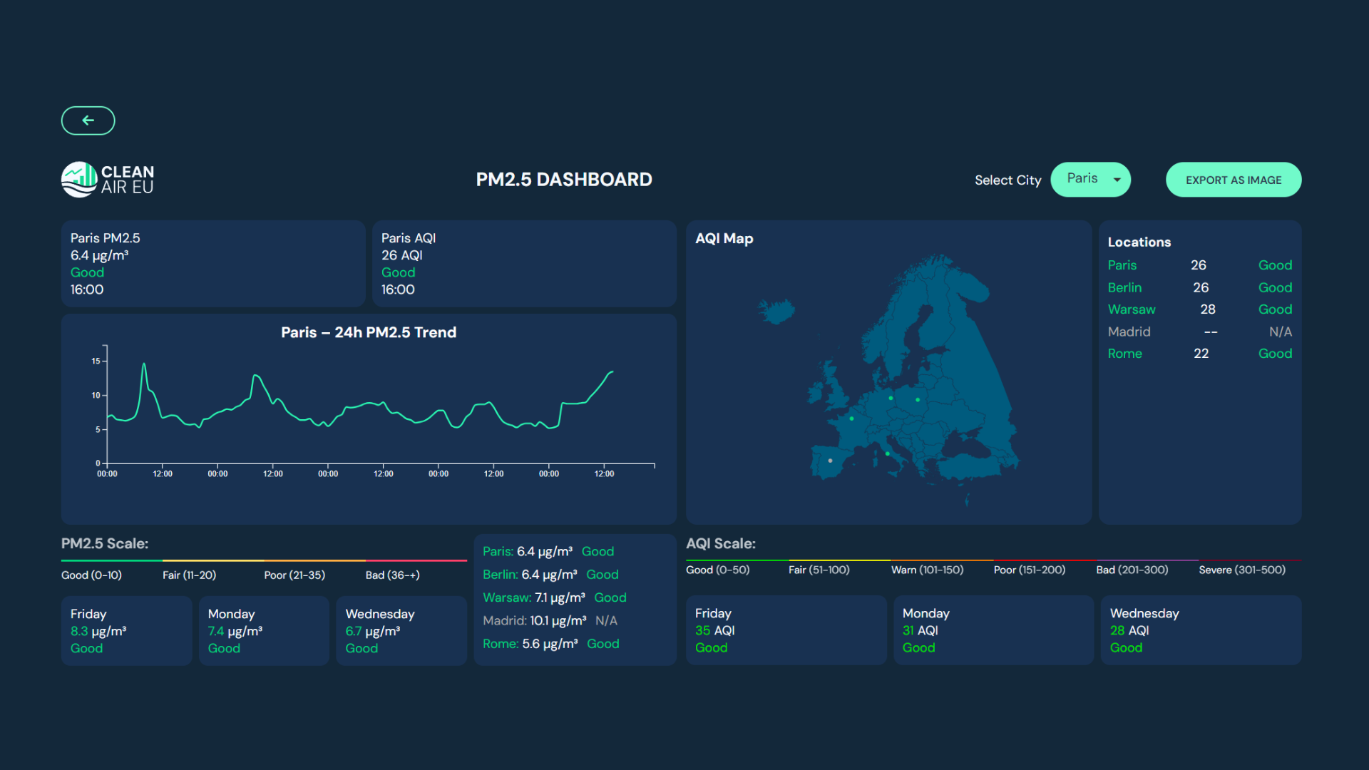 Provide real-time air data to EU cities, schools, and policymakers.